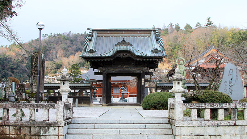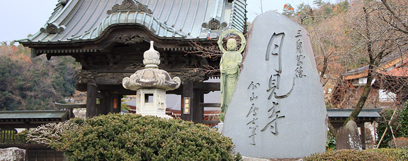 正門の右側には「月見寺」の石碑が確認できます。この石碑は「大菩薩峠」の作者である