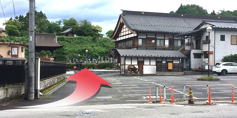 大駐車場を通過します。お車の方は、こちらに駐車ください。