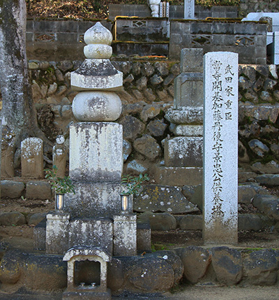 その後、景忠は長篠にて討死しました。法名「真常院殿傑叟道英大居士」。景忠が戦死した後、子の加藤信景公が継ぎますが、武田氏滅亡時に一族ともども武蔵国箱根ヶ崎(東京都西多摩郡瑞穂町大字箱根ヶ崎)で討死しました。