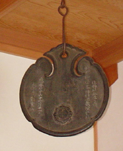 本堂右手の庫裏には山梨県の指定文化財である雲版(うんぱん)がございます。雲版とは、