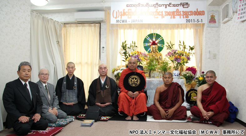 ミャンマー国仏教界を代表して今回の東日本大震災に際し、ミャンマー国60日法要(日本に於いての四十九日法要)を2011年5月11日に営弁し、被災した方々の慰霊の為に来日された。